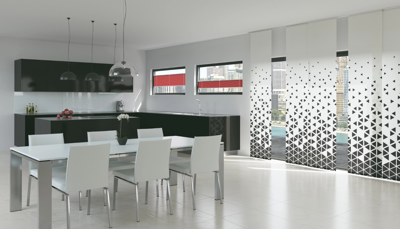 MHZ Flächenvorhänge überzeugen durch das perfekte Zusammenspiel von Gewebe und Technik. Als Sichtschutz, zur Beschattung oder als Designelement prägen sie die Raum- und Fenstergestaltung in Ihrem Zuhause entscheidend mit.